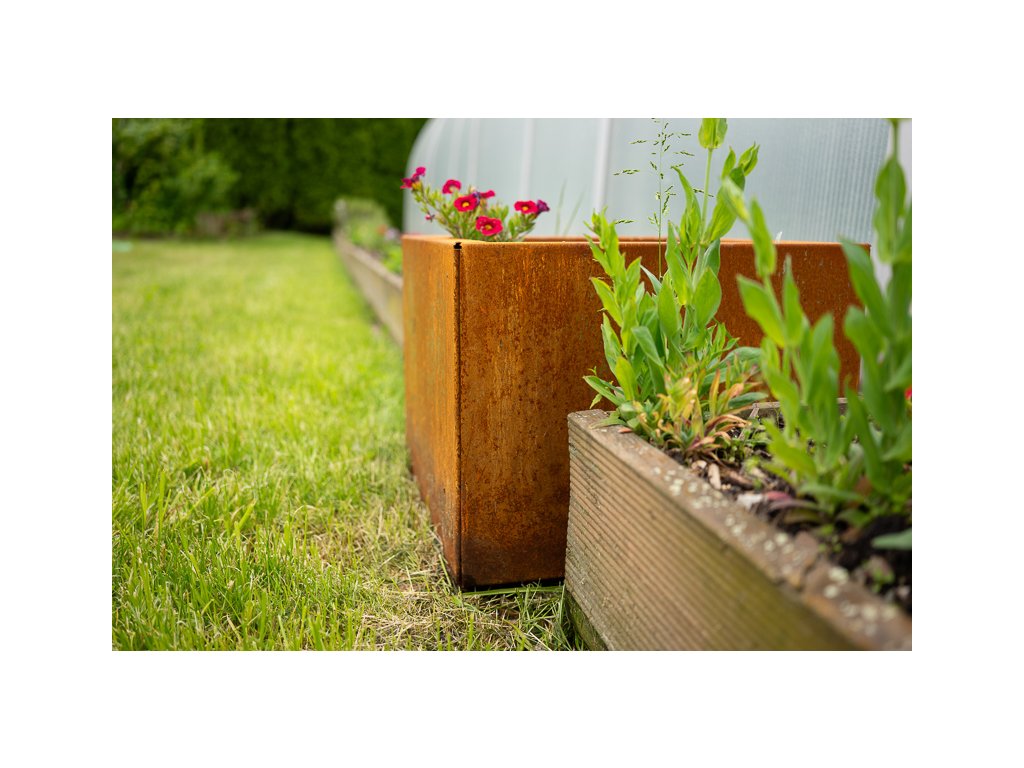 Zahradní květináč CUBE je výsledkem precizní české výroby a promyšleného designu. Využívá originální švédskou ocel COR-TEN®, která v exteriéru přirozeně patinuje – bez nutnosti nátěrů nebo další údržby. Charakteristická rezavá vrstva není vadou, ale funkční ochranou, která zajišťuje dlouhou životnost i odolnost vůči dešti, mrazu a slunečnímu záření.